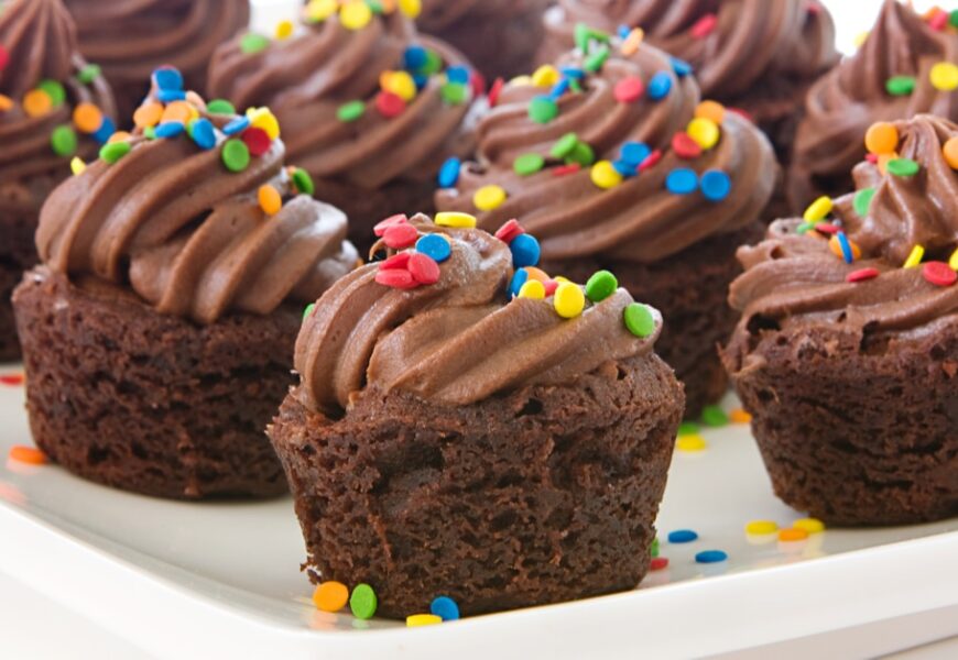 Here’s another easy-to-follow recipe for standard vanilla mini cupcakes, but for this one, you’ll top them with a smooth and super sweet chocolate buttercream frosting.