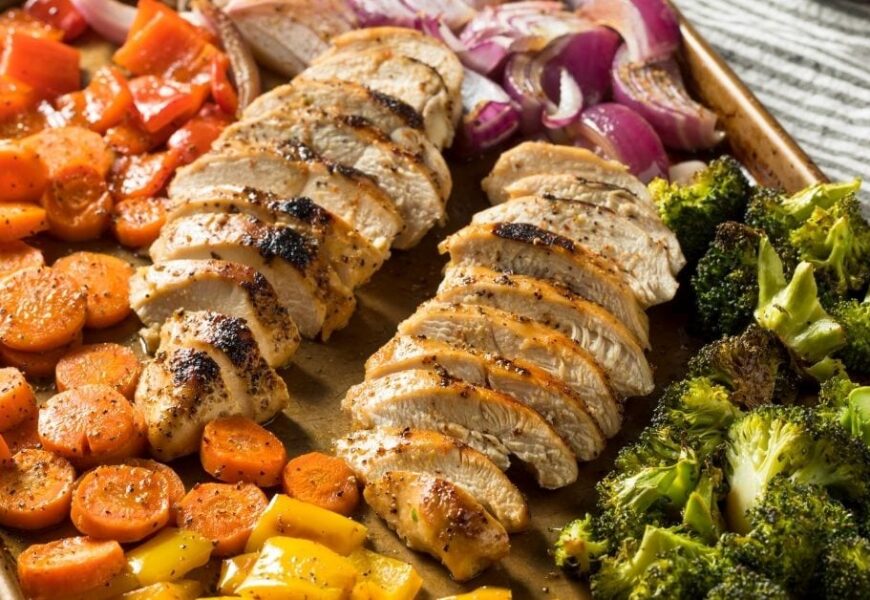 Imagine tender chicken, perfectly roasted potatoes, and crisp veggies all cooked on one pan and ready in minutes.