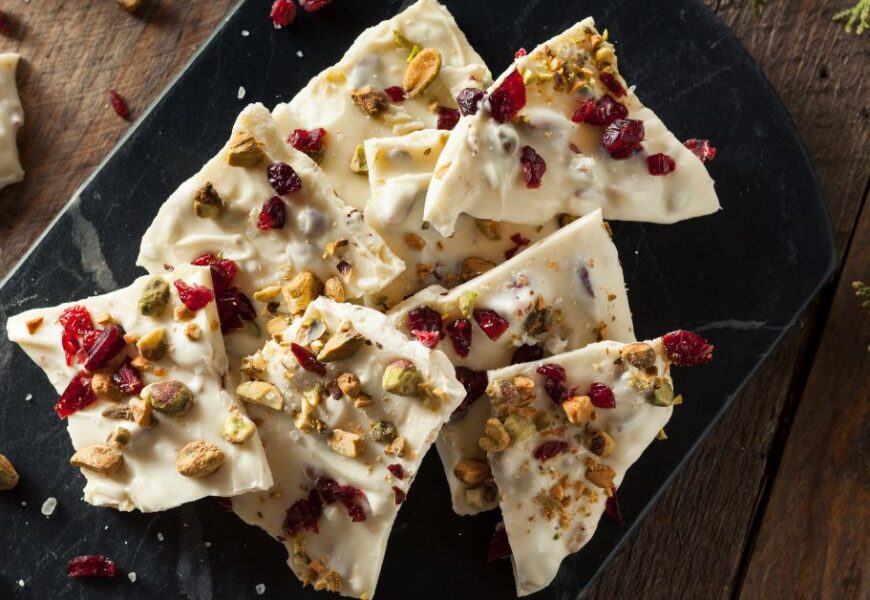 All you need are some salty pistachios, tart cranberries, and sweet white chocolate. These three ingredients come together for a great balance of flavors. And the chewy, crunchy, creamy textures are a total delight!