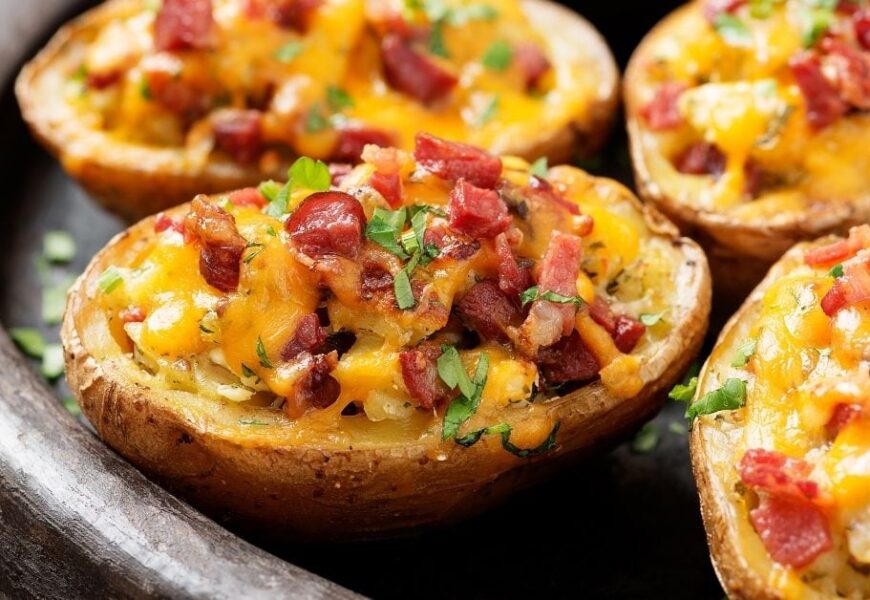 7. Cheesy Irish Cheddar Bacon Jalapeño Potato Skins
