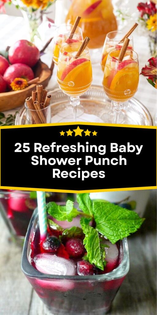 Here’s another great option for a fall baby shower. This punch features apple cider, orange juice, cranberry juice, lemon juice, and sparkling wine.